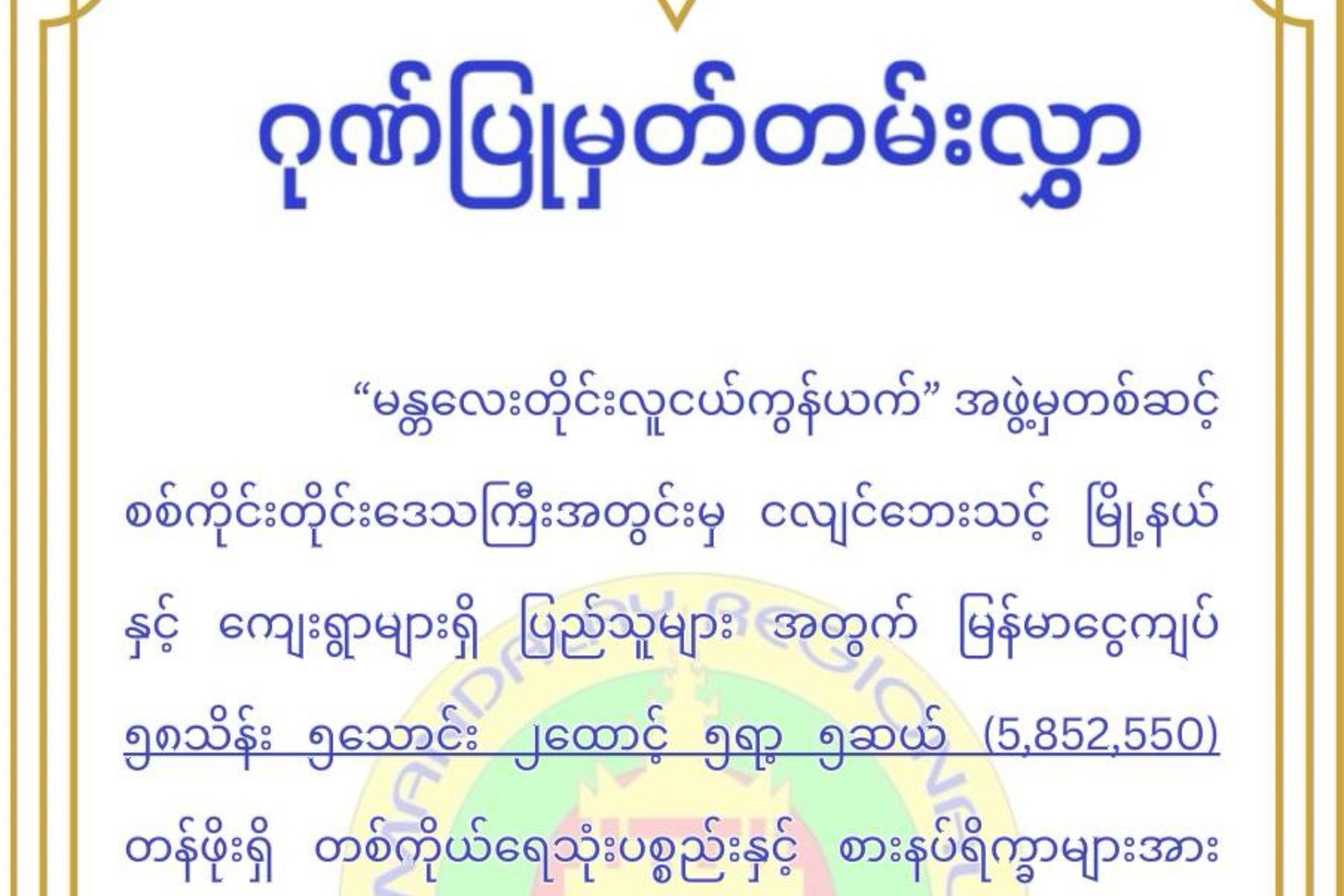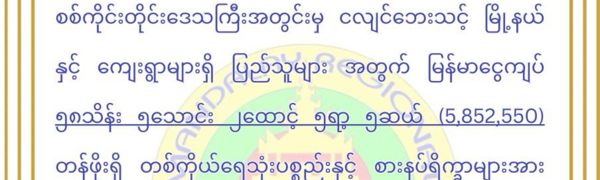 MyanLife Innovation Co. Ltd has extended a generous contribution of 5,852,550 MMK to support earthquake-affected communities in Sagaing Region. The donation aimed at helping displaced families and those in urgent need following the disaster.