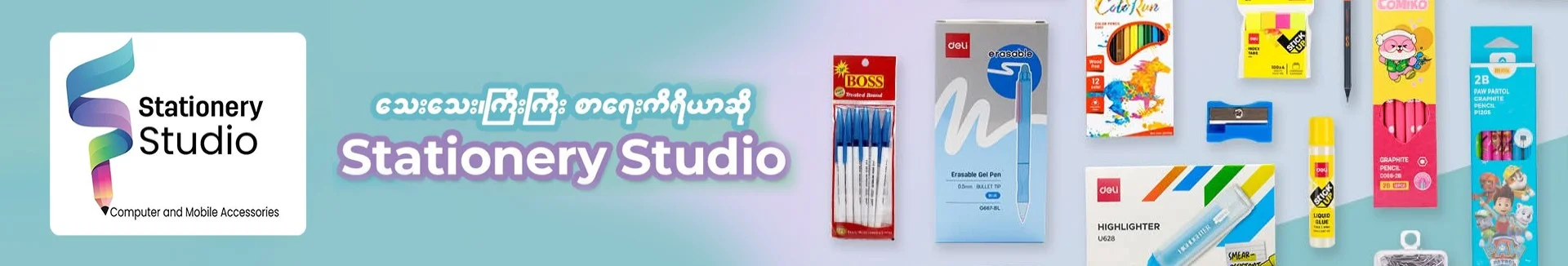 <p>ရုံးသုံး၊ ကျောင်းသုံး Stationery သေးသေးကနေစလို့ ကြီးကြီးထိ လိုအပ်တာအားလုံး လက်လီလက်ကားဝယ်ယူနိုင်မှာဖြစ်လို့ အသစ်အသစ်သော ပစ္စည်းတွေ၊ Quality ရှိတဲ့ပစ္စည်းတွေကိုမှ ရွေးချယ်အသုံးပြုချင်တဲ့သူတွေအတွက် Stationery Studio က အရွေးချယ်သင့်ဆုံးနေရာတစ်ခုပါပဲနော် </p>