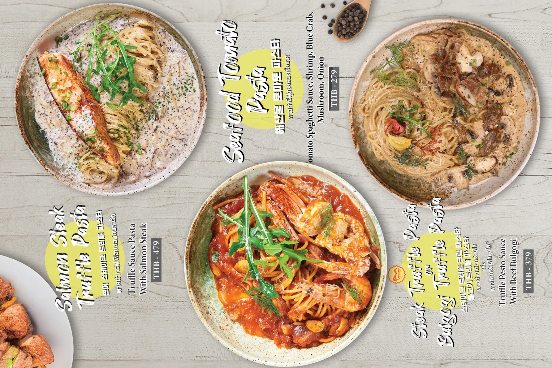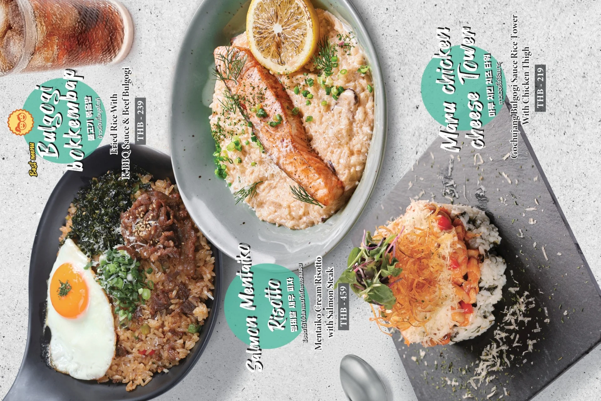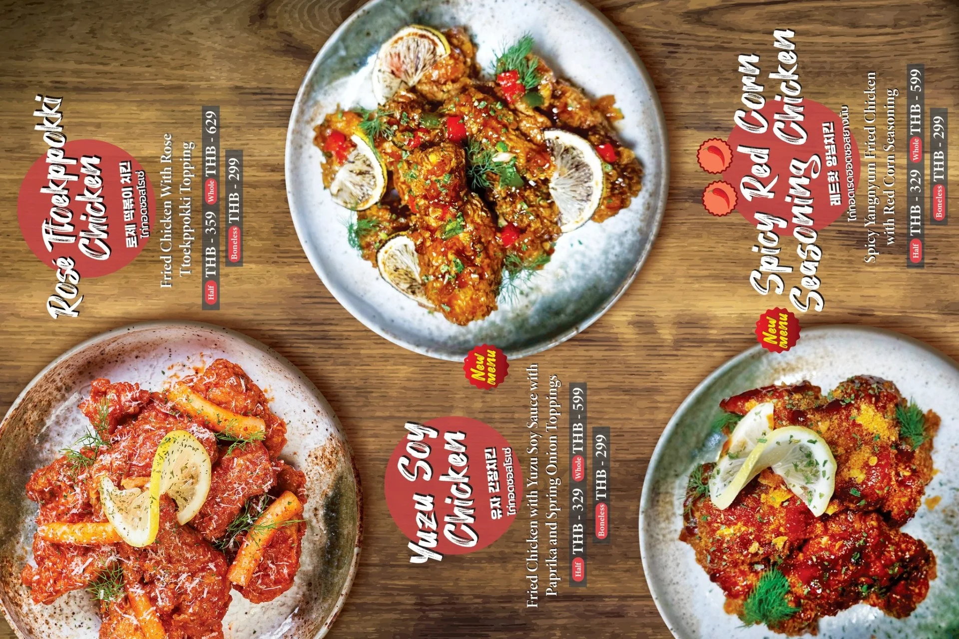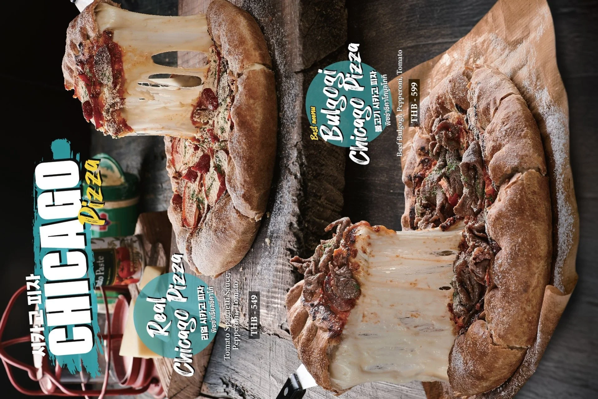 Best-selling menu of Pizzamaru are : Chicago Pizza, Bulgogi Pizza, Twisted Edge, Gold Edge, Garlic Gangjeong Chicken, Vegetable Chicken, Shrimp rose pasta, Japchae Pasta/ Jjajang Pasta and Rice Tower.