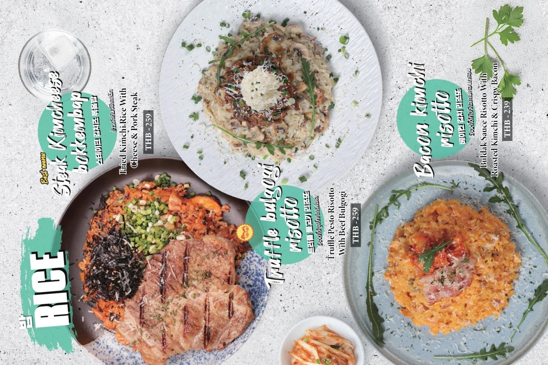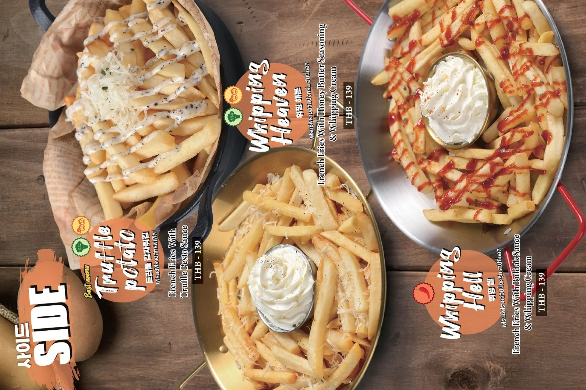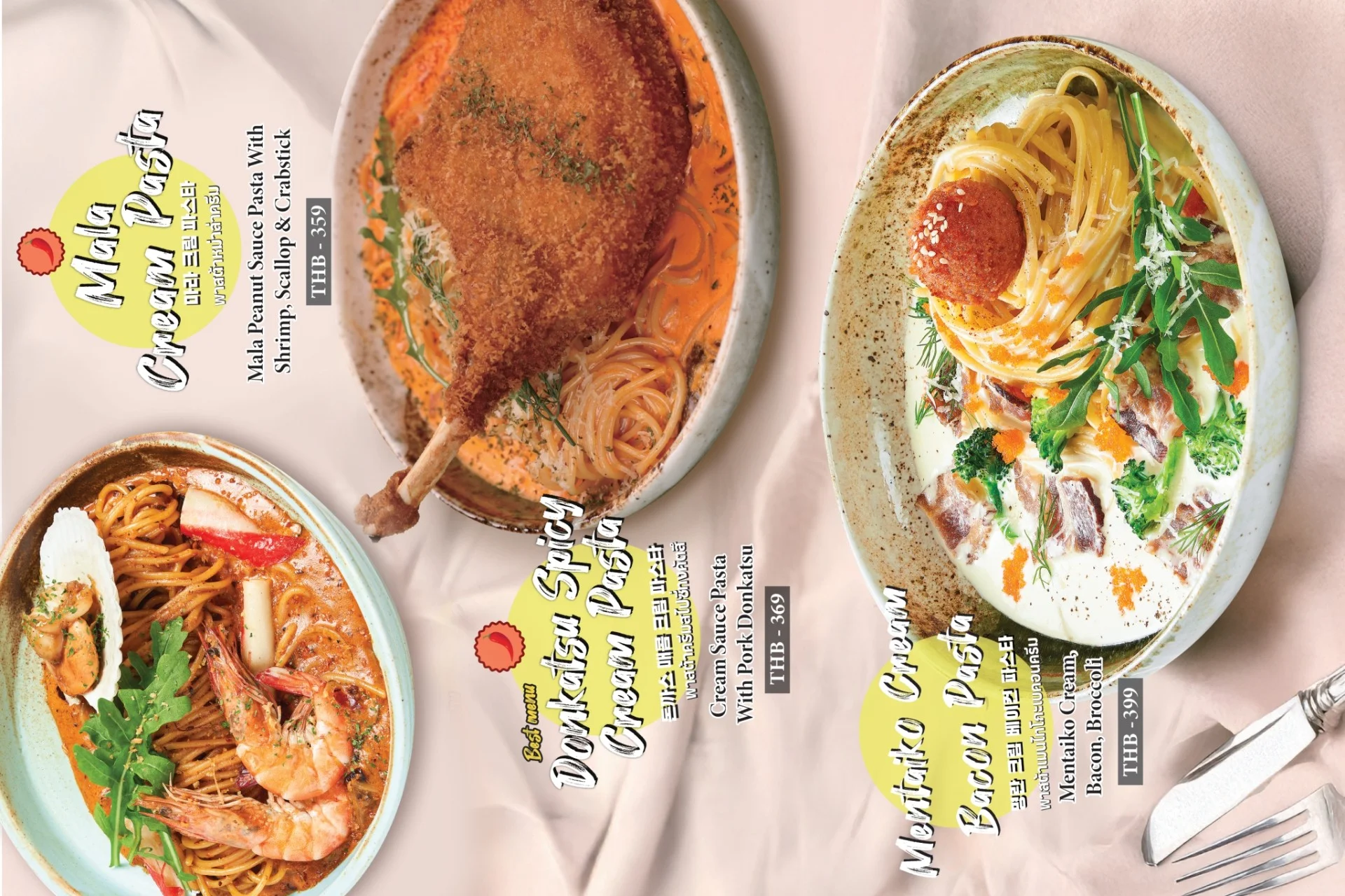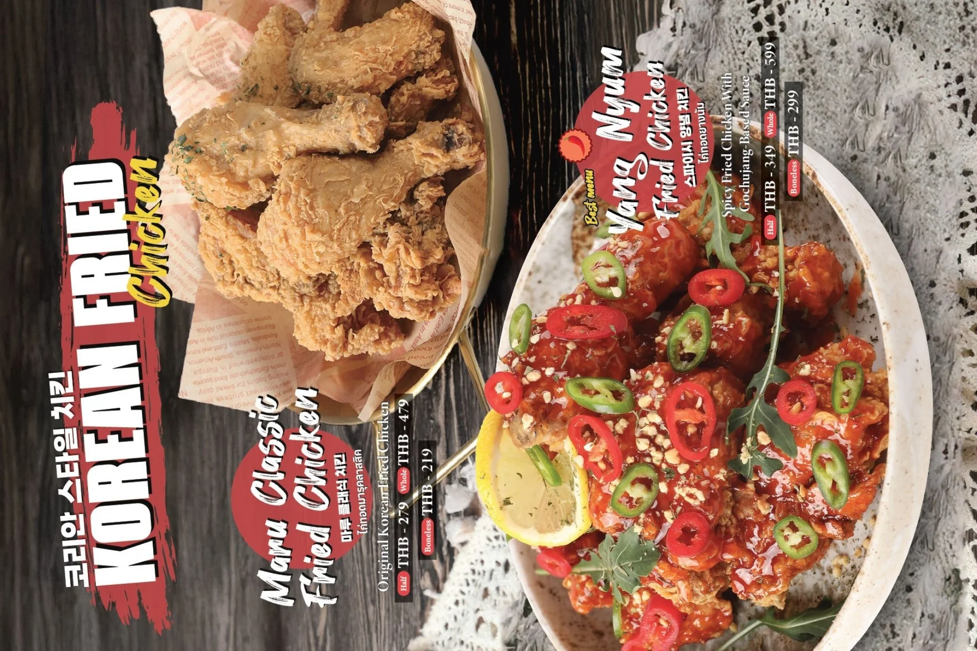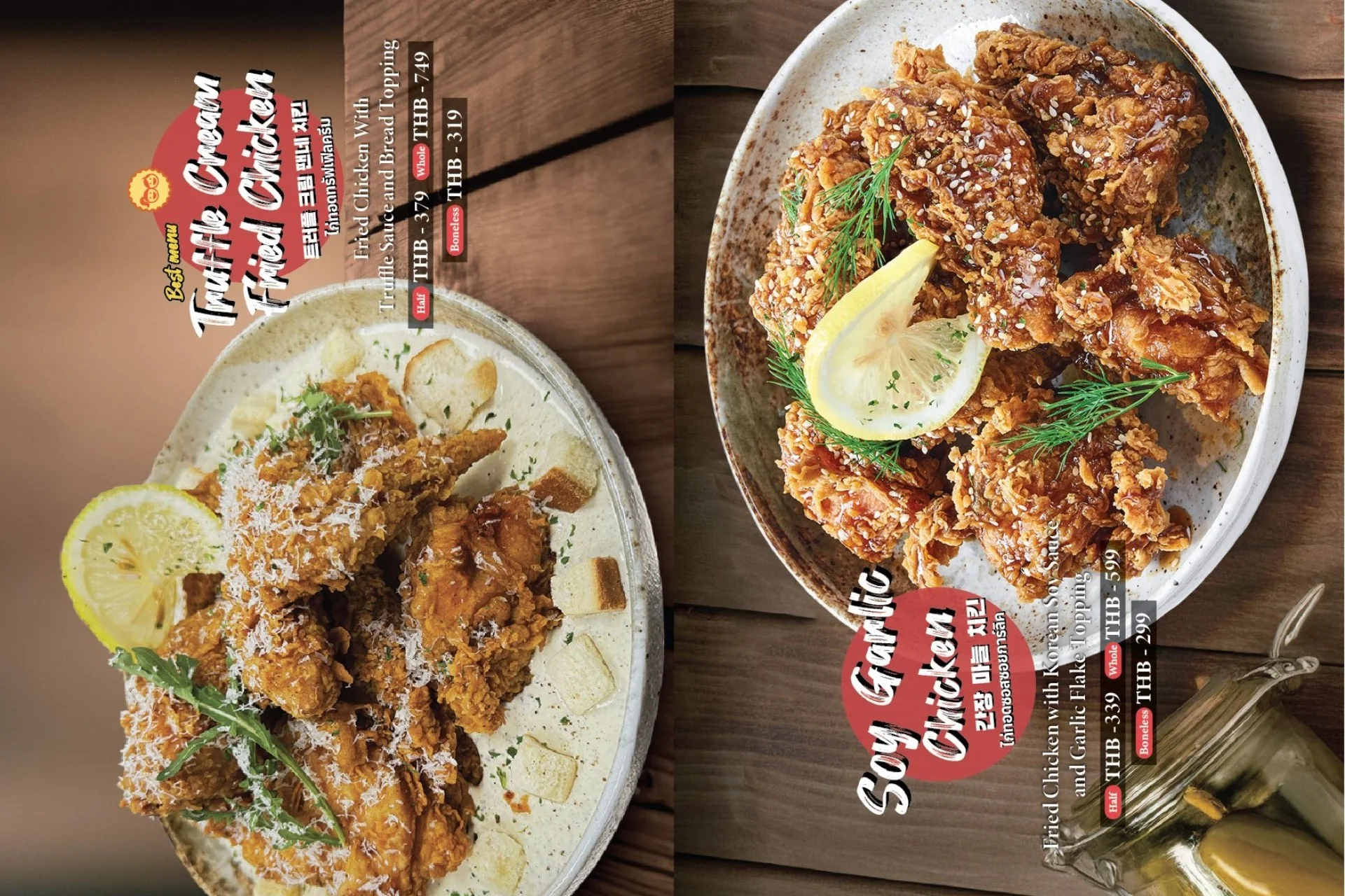 Best-selling menu of Pizzamaru are : Chicago Pizza, Bulgogi Pizza, Twisted Edge, Gold Edge, Garlic Gangjeong Chicken, Vegetable Chicken, Shrimp rose pasta, Japchae Pasta/ Jjajang Pasta and Rice Tower.