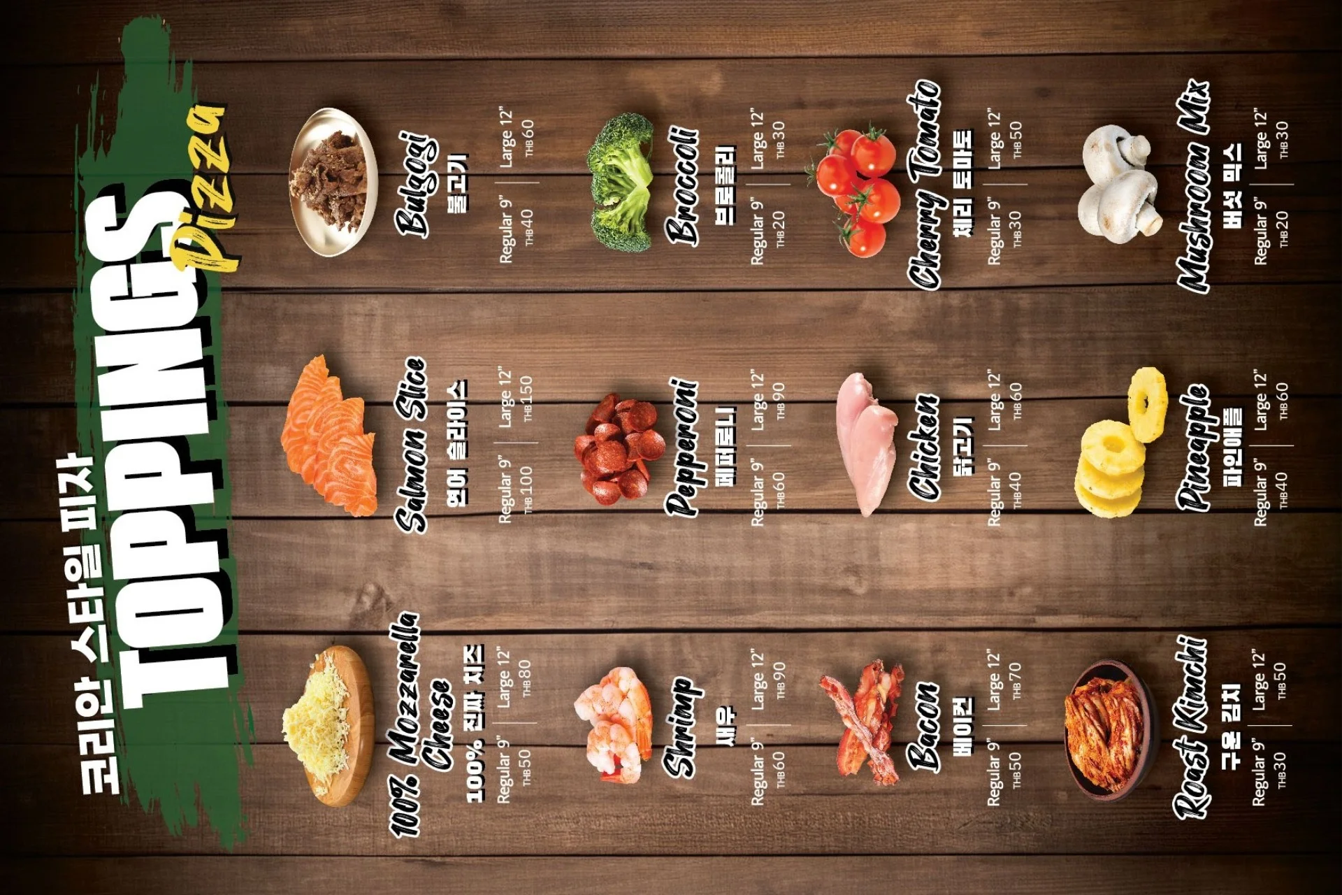 Our Pizza is 100% homemade method of making the dough in the store and making by hand by hand. It is the only brand that can experience Korean style pizza and chicken at the same time. The characteristic of Korean pizza is to maximize the taste of toppings by utilizing rich toppings and using sauces suitable for major toppings. For example, it is a method of porting the beef to the bulgogi pizza and adding the sauce that enriches the taste of the beef to maximize the flavor of the bulgogi.