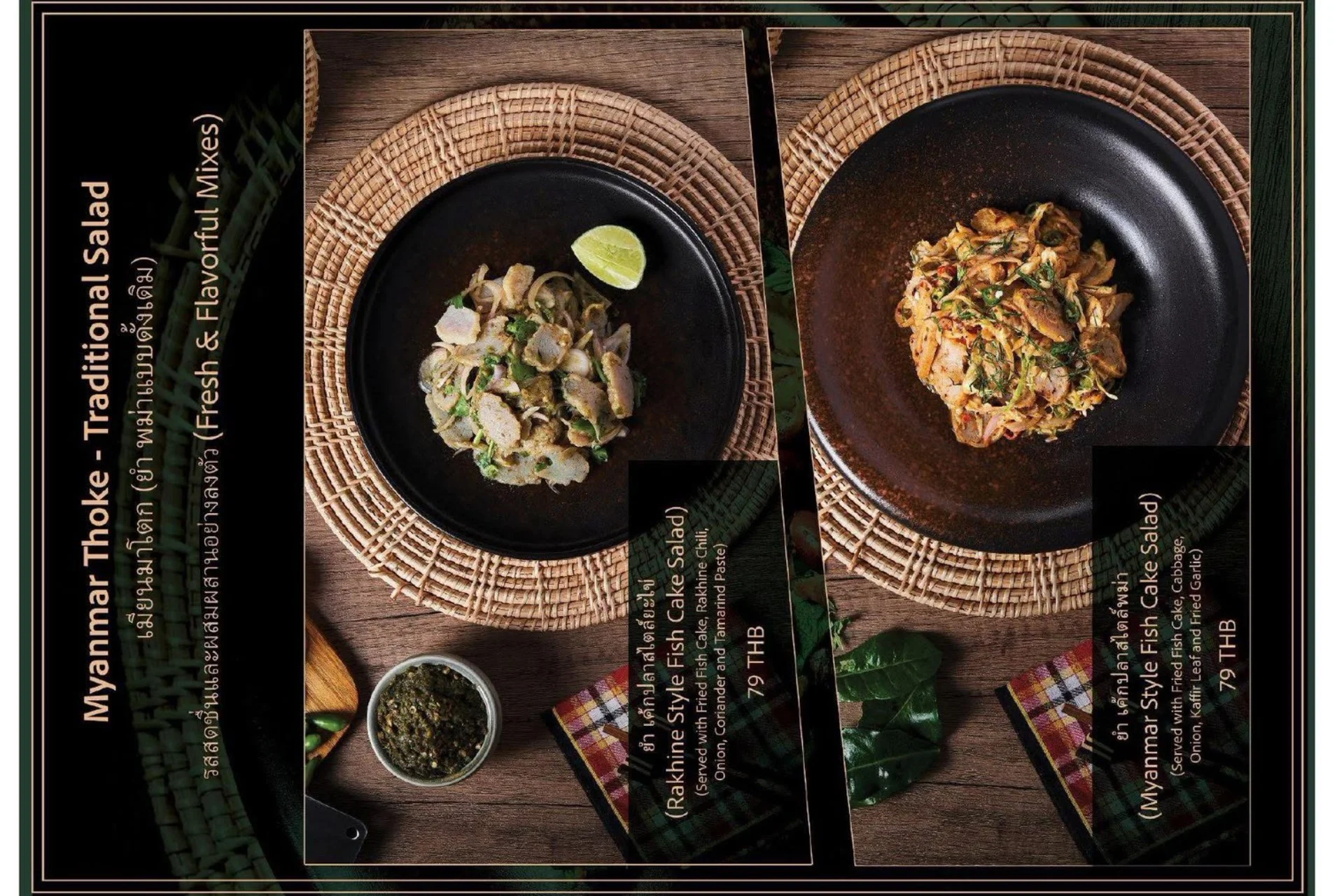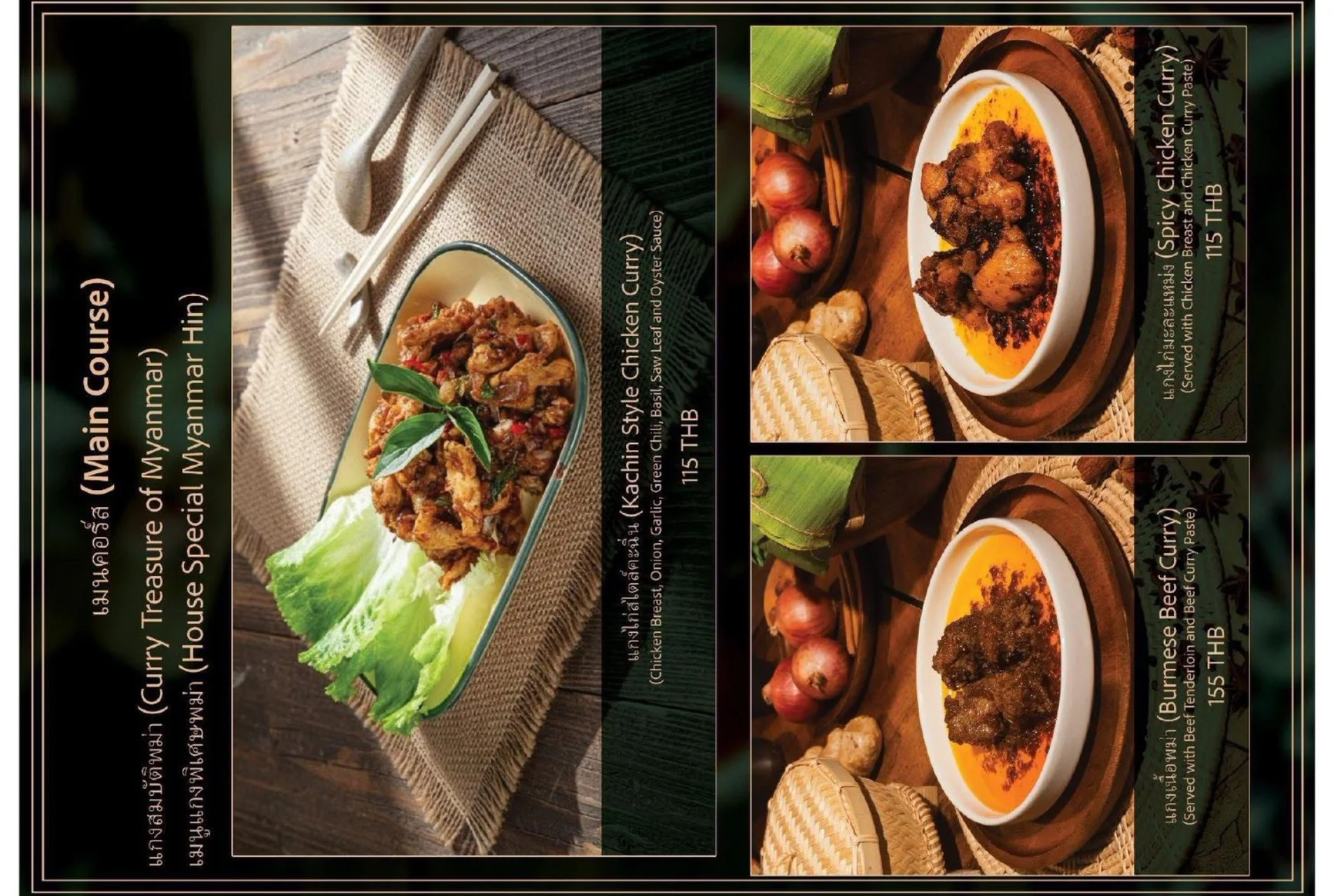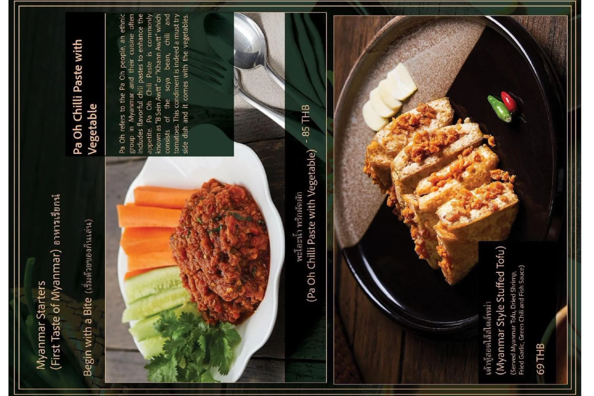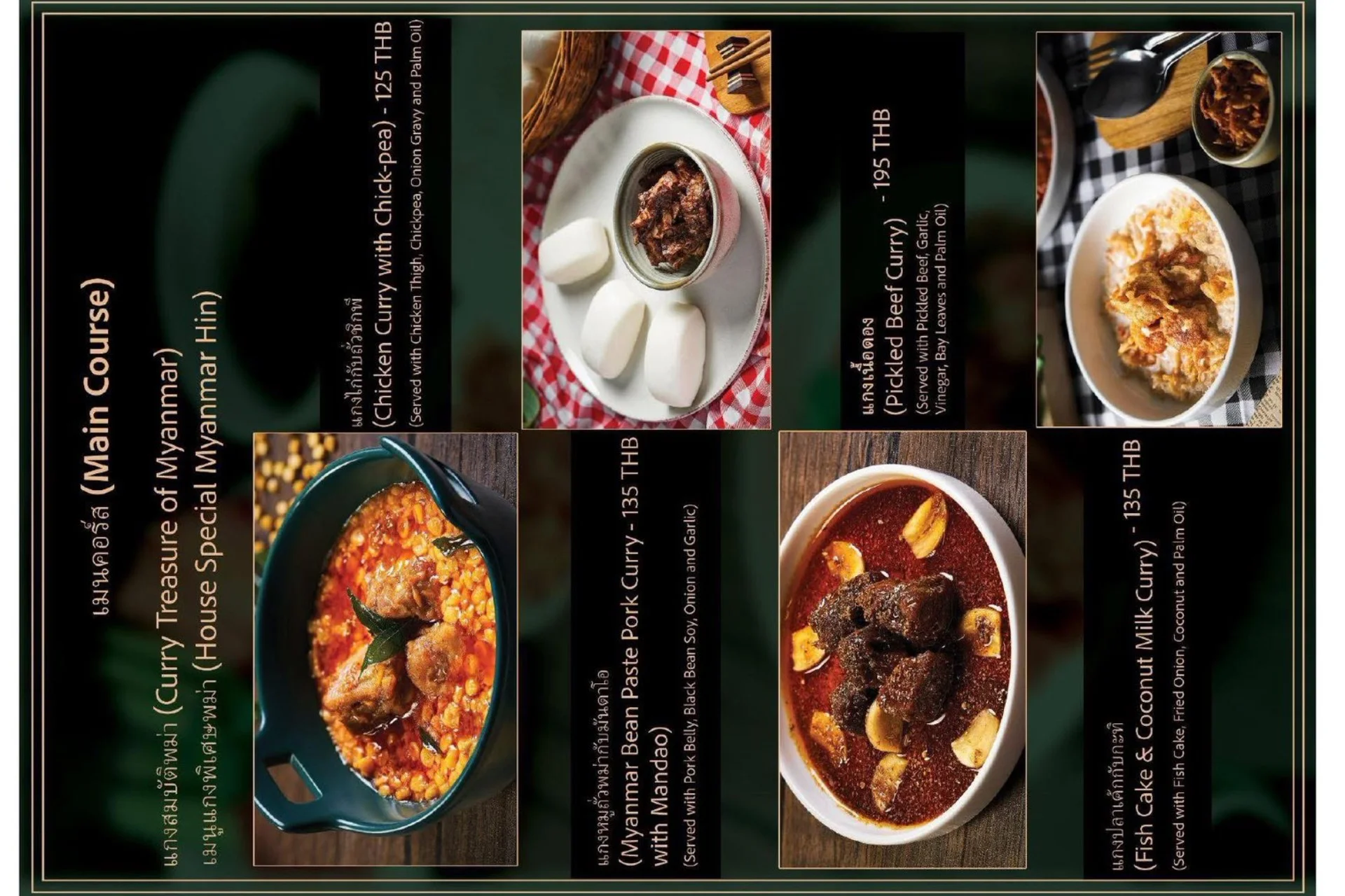 Experience the true flavors of Myanmar at our Burmese Restaurant, located in the heart of Bangkok, Thailand. Our menu features a carefully curated selection of dishes that represent the diverse culinary heritage of Burma. From our signature Burmese Pork Stick, mouthwatering Phat Htamin and the aromatic Sakaw Htamin to other renowned Burmese specialties, each dish is crafted with precision to transport your taste buds to the vibrant streets of Myanmar.