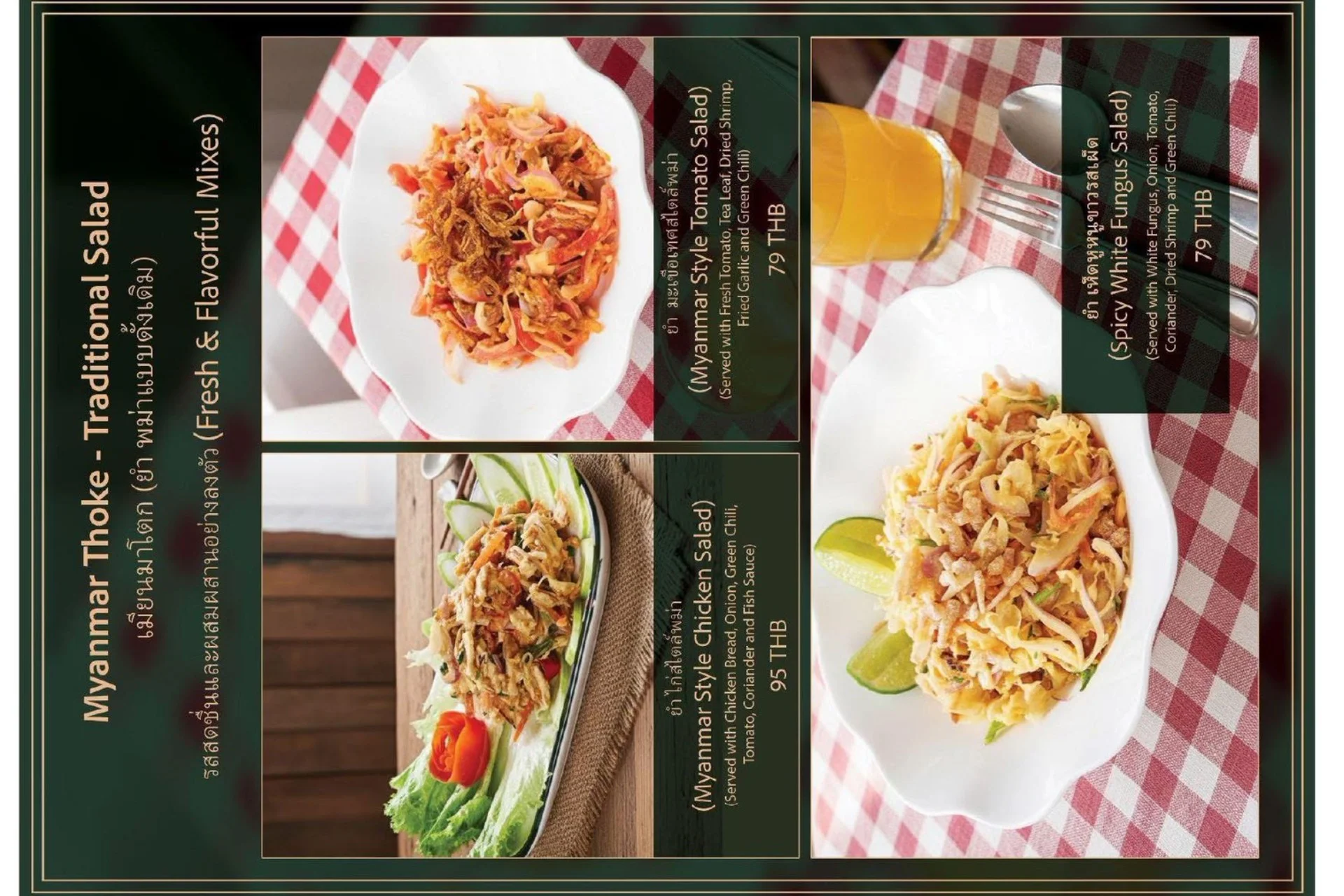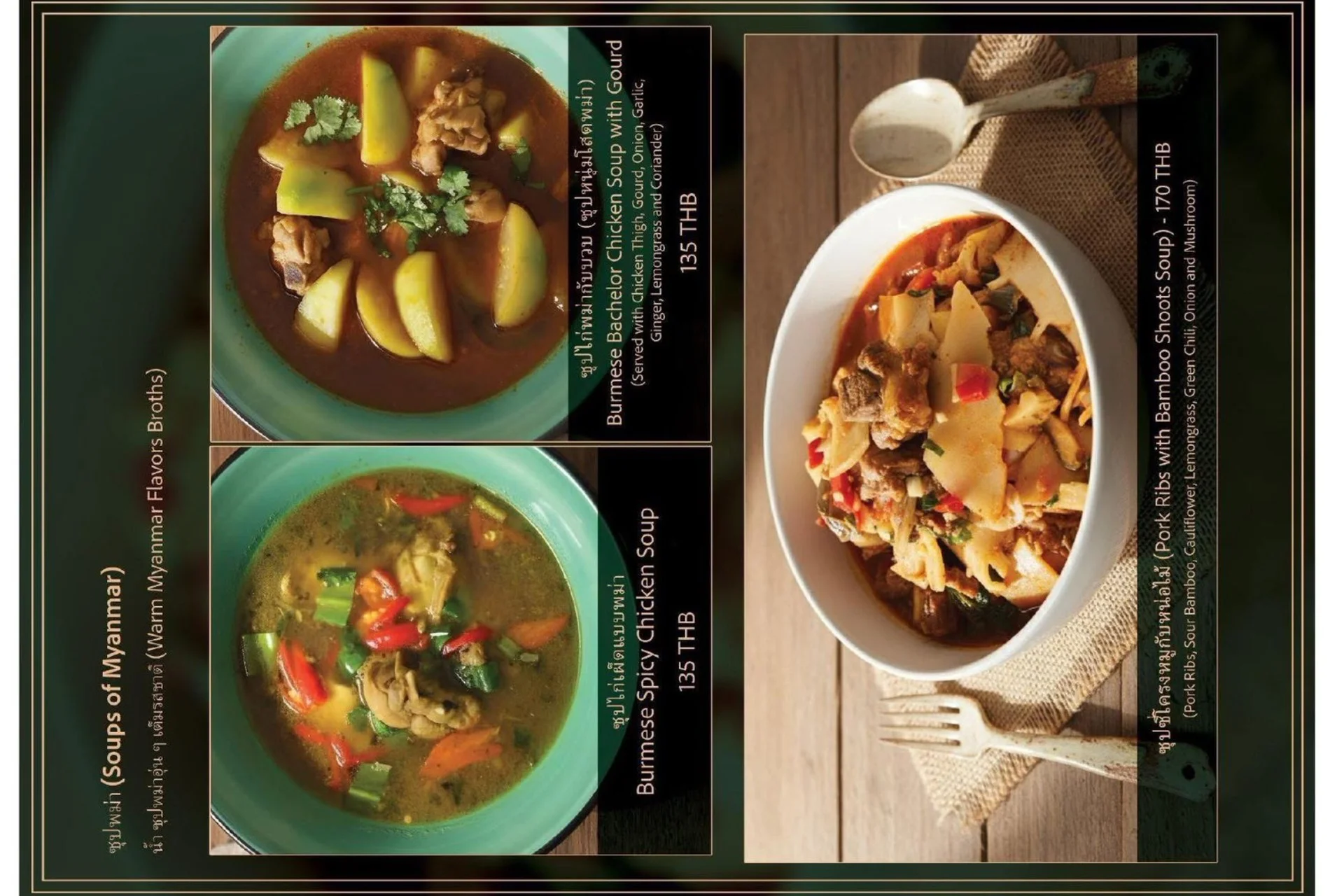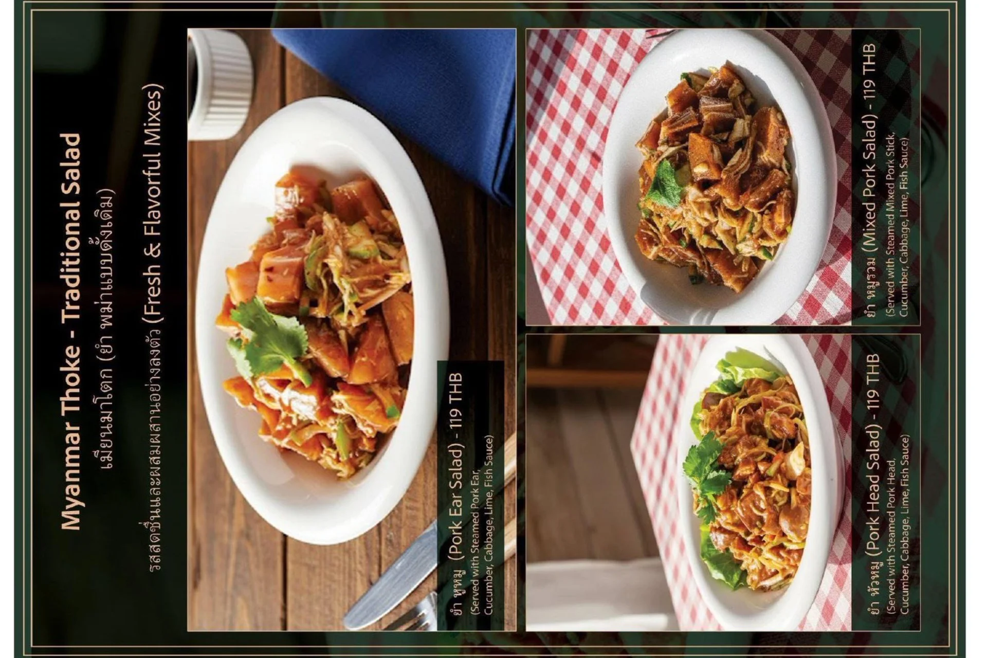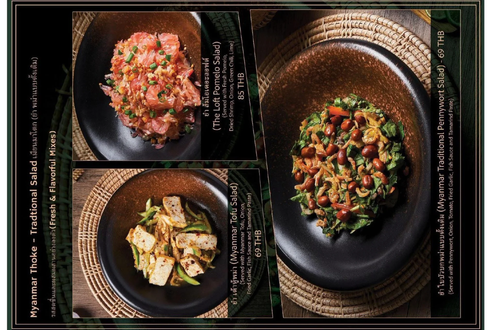 Experience the true flavors of Myanmar at our Burmese Restaurant, located in the heart of Bangkok, Thailand. Our menu features a carefully curated selection of dishes that represent the diverse culinary heritage of Burma. From our signature Burmese Pork Stick, mouthwatering Phat Htamin and the aromatic Sakaw Htamin to other renowned Burmese specialties, each dish is crafted with precision to transport your taste buds to the vibrant streets of Myanmar.